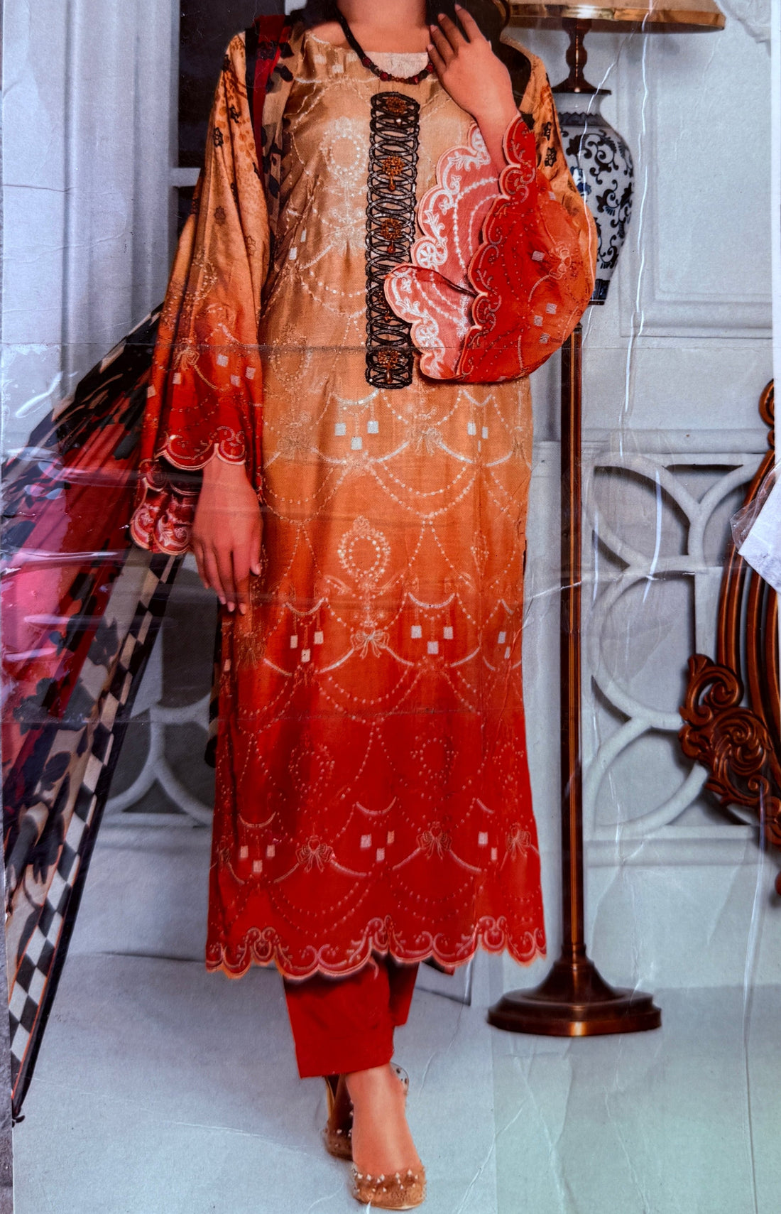 Viscose Schiffli Embroidered 3-Piece – Hoor Ain Signature Shirt Design: Exquisite Schiffli embroidered front enhanced...